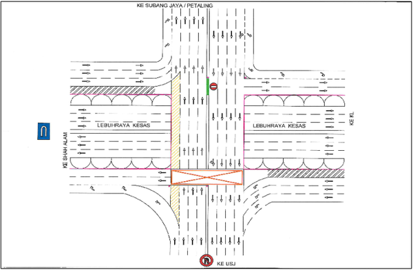 Michelle reports that northbound vehicles travelling from USJ will not be allowed to turn right onto Kesas to head to Kuala Lumpur. Instead, these vehicles must turn left towards Shah Alam and take the nearby elevated U-turn.