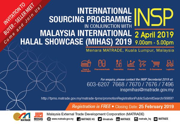 The one-day INSP, held in conjunction with the Malaysia International Halal Showcase (MIHAS) 2019, will see buyers and sellers go through 2,000 business meetings.