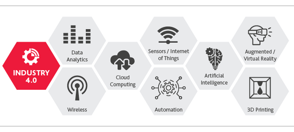 The nine pillars of the Industry 4.0 are autonomous robots, simulation, system integration, Internet of Things, cybersecurity, the cloud, additive manufacturing, big data, and analytics.