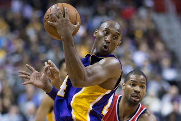 Bryant playing against former Washington Wizards player Gary Neal, after announcing his forthcoming retirement in 2015. — Picture by KEITH ALLISON[/caption]