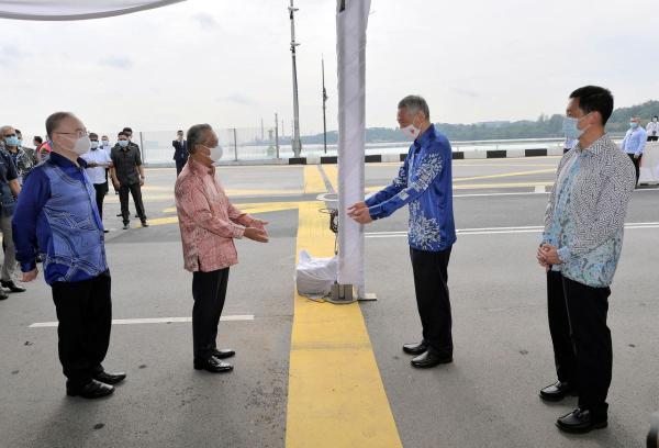 Malaysian Prime Minister Tan Sri Muhyiddin Yassin and his Singaporean counterpart Lee Hsien Loong, accompanied by several ministers from their respective countries, arrived at the world's busiest land border crossing at about 10 am.