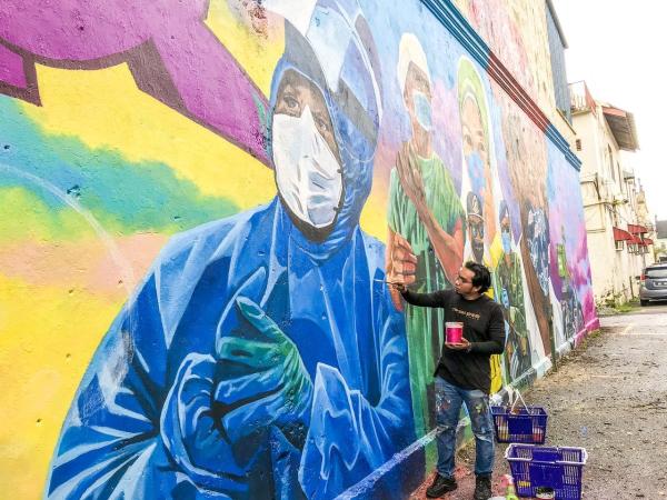 On his latest mural project, the artist said he was in the midst of painting a mural in honour of the country’s frontliners fighting the Covid-19 pandemic, which is a collaborative effort between the Ministry of Tourism, Arts and Culture Malaysia, National Art Gallery and Kota Bharu Municipal Council-Islamic City.