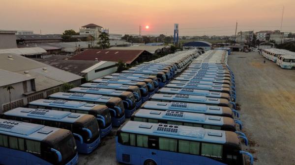 Parked in rows in the Thai capital, with many gathering dust and cobwebs, are hundreds of "tuk tuk" motorised rickshaws, tour buses and boats.