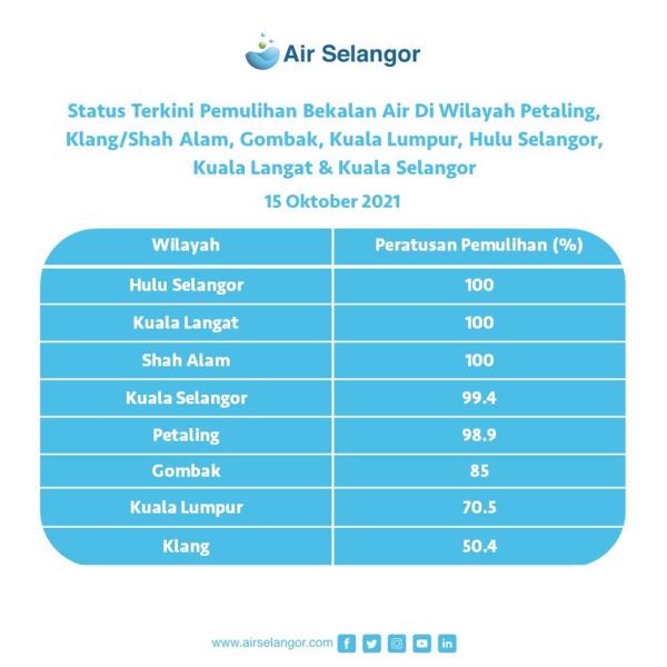"Recovery status for affected areas, Public Water Taps and Commercial Water Filling Station can be obtained at hentitugas.airselangor.com," it said.