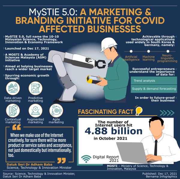 PUTRAJAYA, Dec 17 — The five marketing approaches under the Malaysian Science, Technology, Innovation and Economy Framework 10-10 (MySTIE) 5.0 marketing and branding initiatives are able to help businesses affected by the Covid-19 pandemic, said Science, Technology and Innovation Minister Datuk Seri Dr Adham Baba.