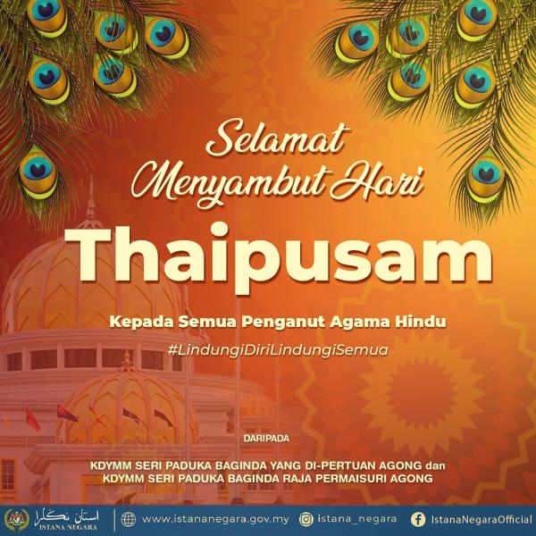 Through a posting on the Istana Negara Facebook, Their Majesties hoped that this auspicious occasion for the Hindus would be celebrated with joy, while at the same time, observing the stipulated standard operating procedures (SOP).