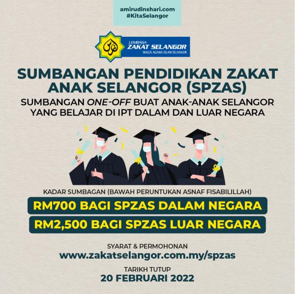 "Children of Selangor who are studying at IPTs inside and outside the country can apply for SPZAS at www.zakatselangor.com.my/spzas," he said in a Facebook post.