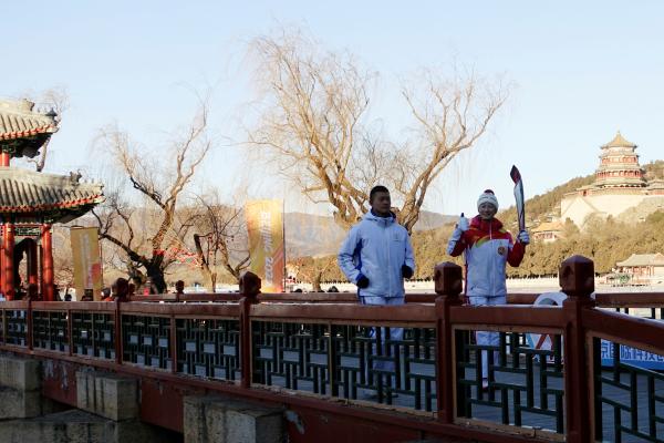 Torch-bearers on a cold sunny morning ran past the bridges, pagodas and frozen lakes of the Summer Palace, built by China's last imperial dynasty.