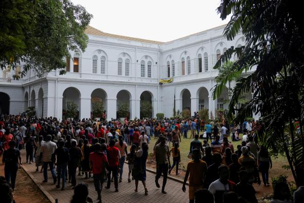 Colombo was calm on Monday as hundreds of people strolled into the president's secretariat and residence and toured the colonial-era buildings. Police made no attempt to intervene.