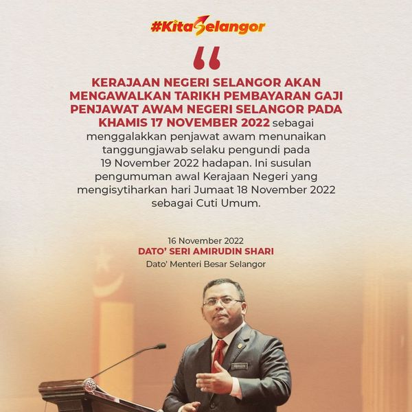 “The state government has decided to make an advance salary payment to Selangor civil servants tomorrow (November 17). May this ease all affairs,” he said on Twitter today.