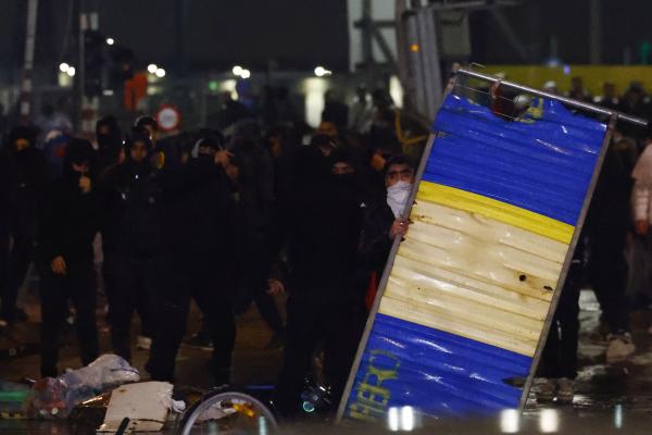 "The rioters used pyrotechnic material, projectiles, sticks, and set fire on the public highway," the police said. "Also, a journalist was injured in the face by fireworks. It is for these reasons that it was decided to proceed with a police intervention, with the deployment of water cannon and the use of tear gas," the police said.