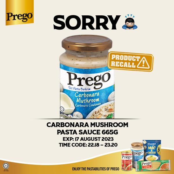Health director-general Tan Sri Dr Noor Hisham Abdullah said the product involved in the recall is the Prego Mushroom Carbonara Cream Sauce (665 grams (g)) with the batch number 2022081716, expiry date August 17, 2023, with the time code 22:18 to 23:20.