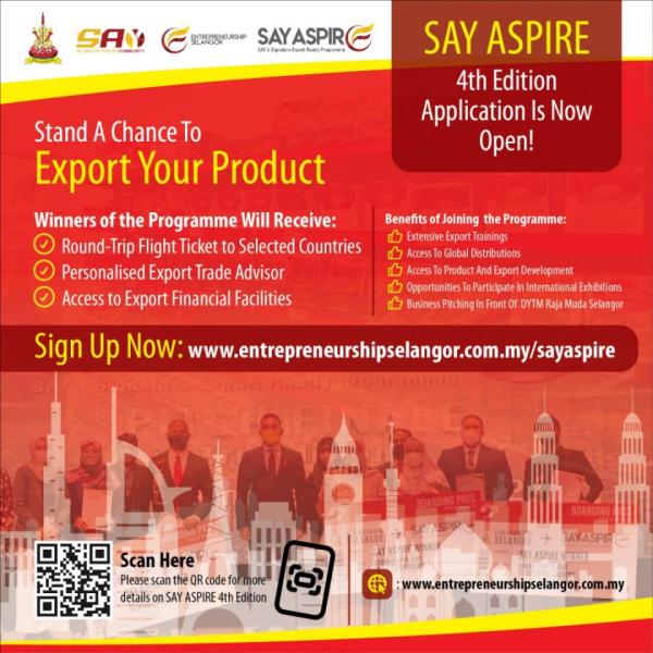 Those who are interested may visit www.entrepreneurshipselangor.com.my/sayaspire for further information. Applications will be closed on February 12.