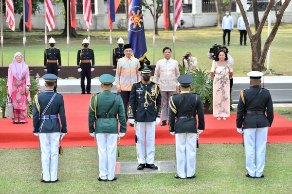 After Malaysia’s national anthem Negaraku and the Philippines’ Lupang Hinirang (Chosen Land) were played and followed by a 19-gun salute, Anwar, who was accompanied by Marcos, inspected a guard of honour mounted by 165 soldiers of the Philippine Armed Forces.