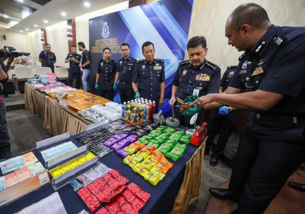 Azmi said four raids were conducted from February 28 to March 1 in Segambut, Cheras and Pandan Perdana, with the arrest of two men and a woman, and police seized various types of drugs including methylenedioxy-methamphetamine weighing 7.6 kg; ketamine (3.8 kg); Eramin5 pills (10,120 pills); and syabu (1 kg), all worth an estimated RM1.7 million.