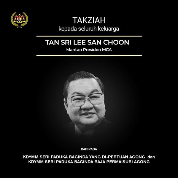 KUALA LUMPUR, March 4 — The Yang di-Pertuan Agong Al-Sultan Abdullah Ri'ayatuddin Al-Mustafa Billah Shah expressed his condolences to the family of the late former MCA president Tan Sri Lee San Choon who passed away yesterday.