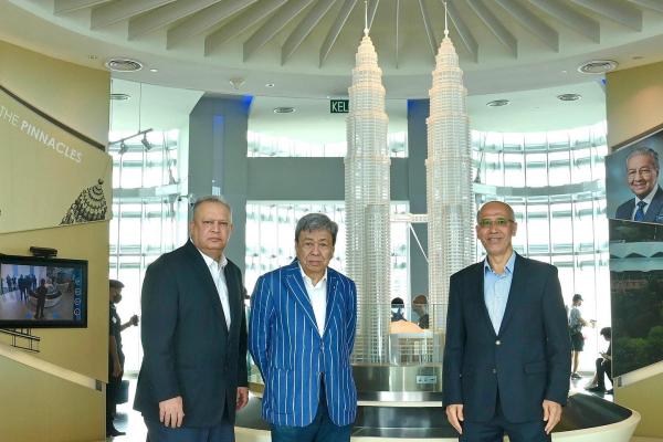 During His Royal Highness' inaugural visit to the world's tallest twin towers, the delegation was accompanied by Petronas Berhad chairman Tan Sri Mohd Bakke Salleh and MRCB executive vice-chairman Tan Sri Mohamad Salim Fateh Din.