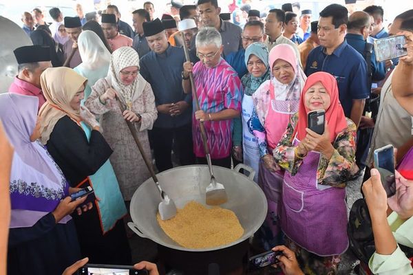 Al-Sultan Abdullah and Tunku Azizah also took the opportunity to stir (or sangai in the Kadayan dialect) the rice in the hot pan without cooking oil.