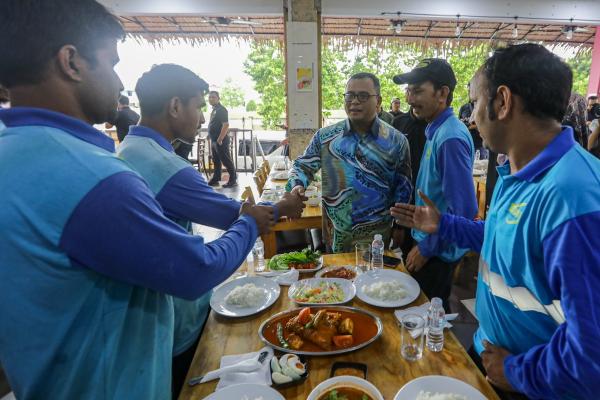 Earlier today, the Menteri Besar attended a lunch gathering with around 70 cleaning personnel at Restoran De'Rumbia Ikan Bakar. Also in attendance was KDEBWM's chief executive officer Datuk Ramli Mohd Tahir and Kajang Municipal Council President Najmuddin Jemain.