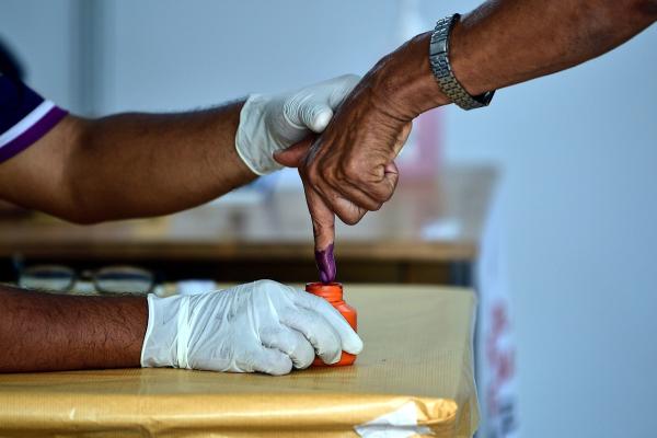Tampin district police chief Supt Anuwal Ab Wahab said in the 11am incident the elderly lady was said to have collapsed suddenly and was unconscious after dipping her finger in indelible ink.