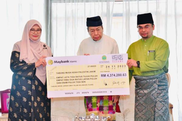 SHAH ALAM, Nov 24 — The Sultan of Selangor Sultan Sharafuddin Idris Shah Alhaj handed over donations totalling RM4,374,280.63 to the Palestine Musa'adah Fund of the Department of Islamic Development Malaysia (Jakim) today.
