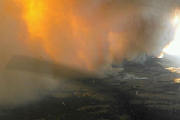 A potential fire impact zone covering several rural towns has been identified as officials urged around 30,000 residents there to leave their homes by today morning.