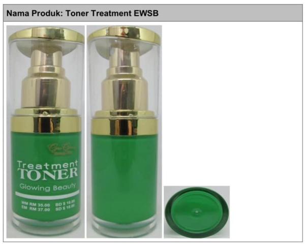 Its director-general Datuk Dr Muhammad Radzi Abu Hassan said the products include Toner Treatment EWSB, which contains hydroquinone and tretinoin; N Glow EWSB (hydroquinone, tretinoin, and betamethasone 17-Valerate), and Glory Cosmetics Facecream (mercury).