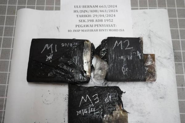 Police also seized three compressed slabs of dried leaves suspected to be ganja, weighing approximately 2.5 kilogrammes and valued at RM7,762.40, in a house, as well as three Yamaha 125z motorcycles worth RM21,000.