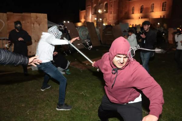 "The chaos comes as Chancellor Gene Block faces criticism for improper handling of the encampment and the same day the university deemed the encampment to be unlawful, threatening students inside with suspension and expulsion," reported Daily Bruin, adding that campus police and security retreated as pro-Israel counter-protesters and other groups attacked protesters in the encampment.