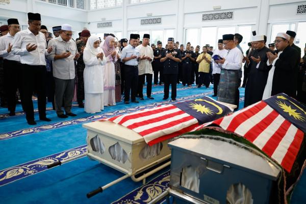 Home Minister Datuk Seri Saifuddin Nasution Ismail and Inspector-General of Police Tan Sri Razarudin Husain, together with hundreds of congregants consisting of officers and members of the Royal Malaysia Police as well as the family members of the fallen policemen performed the funeral prayers, led by Johor Bahru district Imam Mohd Nazri Ali.