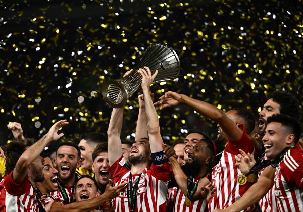 The trophy presentation was also a moment to treasure for Olympiakos manager Jose Luis Mendilibar, who won the Europa League with Sevilla last season and took over the Greek club only in February.