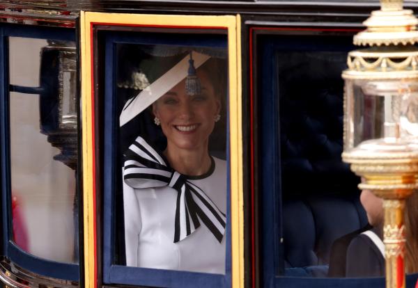 LONDON, June 15 — Kate, Princess of Wales, waved to crowds and smiled broadly from the balcony of Buckingham Palace after watching a military parade today, in her first public appearance this year as she undergoes cancer treatment.