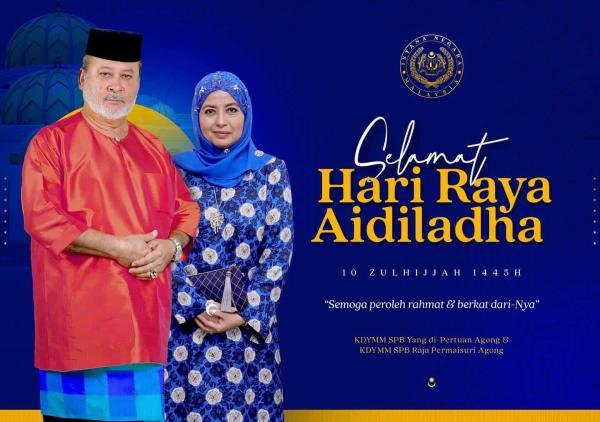 KUALA LUMPUR, June 17 — Their Majesties, Sultan Ibrahim, the King of Malaysia and Raja Zarith Sofiah, the Queen of Malaysia, extended their Hari Raya Aidiladha greetings to all Muslims in the country.