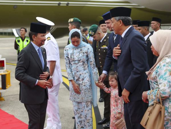 Sultan Hassanal was accompanied by his consort Raja Isteri Pengiran Anak Saleha, Prince Pengiran Muda Abdul Mateen Bolkiah, and members of the Bruneian royal household.
