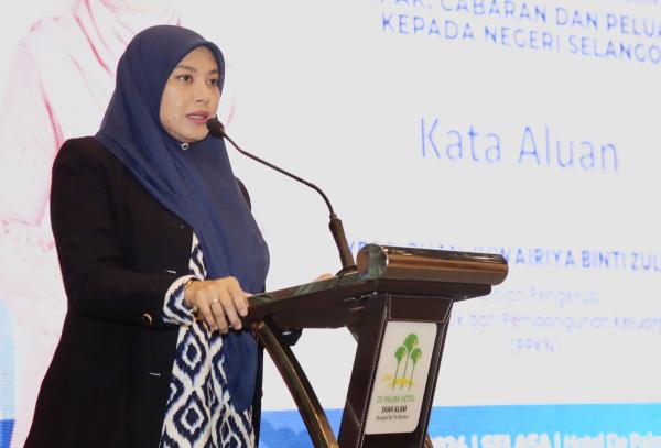 State executive councillor for women empowerment and welfare Anfaal Saari speaks at the 2024 Selangor State Population Seminar at Hotel de Palma, Shah Alam, on July 30, 2024. — Picture by MOHD KHAIRUL HELMY MOHD DIN/MEDIA SELANGOR[/caption]