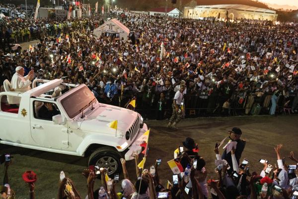 The pope also celebrated a Mass in East Timor with a crowd of some 600,000 people, nearly half the country's population of 1.3 million, in one of the largest ever turnouts as a proportion of a country's population for a Mass during a papal visit.