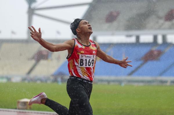 Despite the downpour at the Sarawak Stadium, the 20-year-old ran the race of his life to cross the finish line in 23.75s, with Terengganu's Ainur Haikal Danial Bahrudin (24.97s) taking silver and Sarawak's Flexcyvius Michael Kete Bakar (25.33s) settling for bronze.