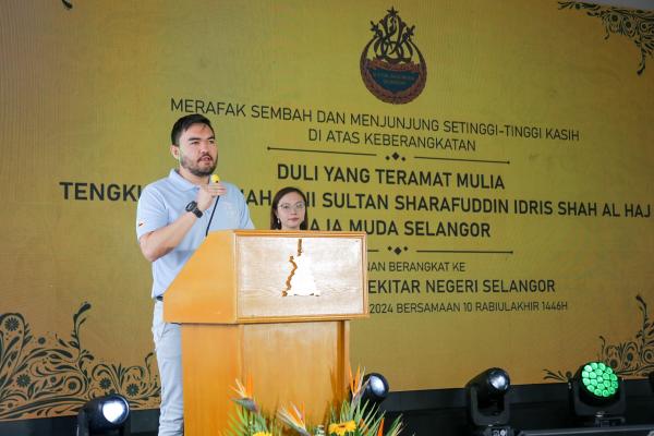 Raja Muda of Selangor Tengku Amir Shah greets the people at the launch of the Selangor Environmental Carnival 2024 at Taman Tasik Millenium, Hulu Selangor, on October 13, 2024. — Picture by FIKRI YUSOF/MEDIA SELANGOR[/caption]