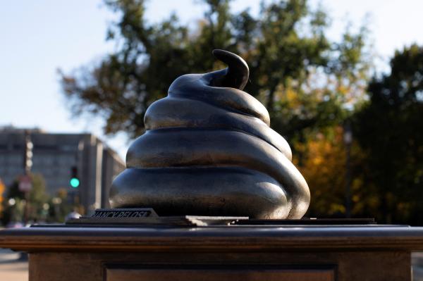 WASHINGTON, Oct 26 — There is a new temporary statue attracting attention near the US Capitol: a brass-coloured desk with poop on top of it.