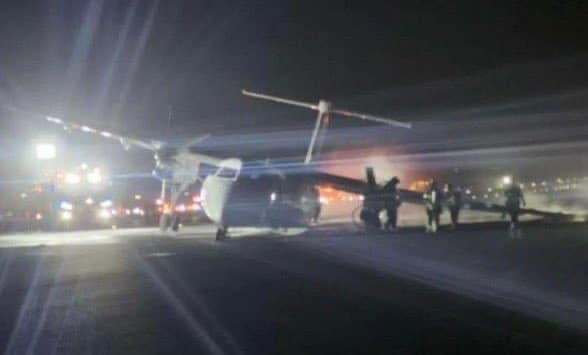 The De Havilland Canada Dash 8-400 en route from St John to Halifax slipped, causing a spark of fire on its wing from dragging along the runway at 9.30pm yesterday, reported Malaysia Gazette.