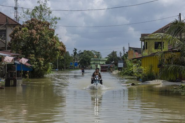 The flooded conditions in Rantau Panjang, overflown by waters from Sungai Golok following heavy rainfall, in Pasir Mas, Kelantan, on December 31, 2024. — Picture by BERNAMA[/caption]