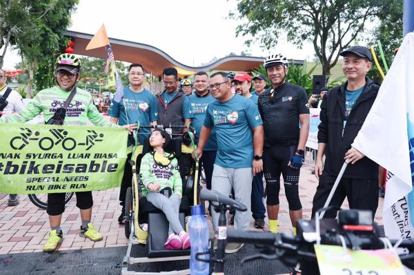 After launching the National Heart Institute’s Ride 4 Your Heart here this morning, Amirudin greeted #bikeisable Anak Syurga Luar Biasa founder Wira Sudepja Rabu, the latter’s wife Murni Dona, and their special needs child Nur Wadihan, who has cerebral palsy.
