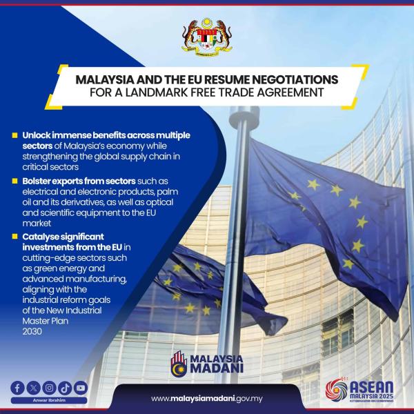 The PMO said the resumption of talks also underscores Malaysia’s commitment to fostering deeper economic ties with the EU, a major trade and investment partner for Malaysia.