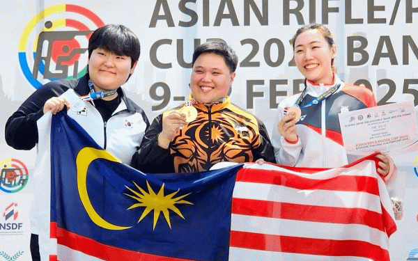 KUALA LUMPUR, Feb 17 — National shooter Alia Sazana Azahari not only fired her way to gold but shattered the Asian record in the women's 25-metre pistol event at the 2025 Asian Rifle/Pistol Cup in Bangkok yesterday.