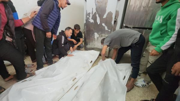At the Al-Aqsa Hospital in Gaza's Deir Al-Balah, relatives rushed to pay farewell to the three white-shrouded bodies.