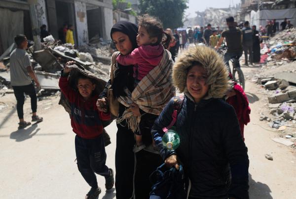 CAIRO/GAZA, April 4 — Hundreds of thousands of fleeing Gazans sought shelter yesterday in one of the biggest mass displacements of the war, as Israeli forces advanced into the ruins of the city of Rafah, part of a newly announced "security zone" they intend to seize.