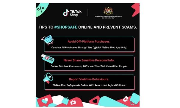 #ShopSafe tips from TikTok Shop and KPDN include avoiding off-platform purchases, not sharing sensitive personal information, and reporting suspicious behaviour through the app.