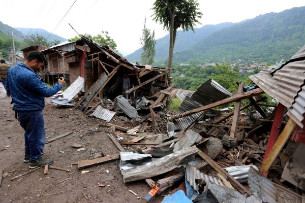 A boy collects papers from the debris of a residential house damaged by a cross-border shelling in Gingal village near the Line of Control between India and Pakistan, in Indian Kashmir's Baramulla district, on May 9, 2025. — Picture by REUTERS[/caption]