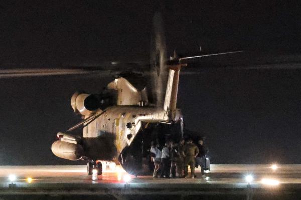 In a photo taken on the military helicopter and released by Israel, Alexander held a sign reading: “Thank you, president Trump.”