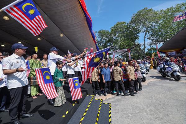 MUAR, July 27 — Prime Minister Datuk Seri Anwar Ibrahim flagged off the 2025 Kembara Merdeka Jalur Gemilang (KMJG) convoy at Dataran Tanjung Emas today, marking the official start of the National Month celebrations and spreading the spirit of patriotism across the nation.